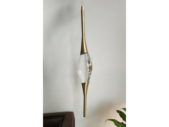 Стильные высокие подвесы IL PEZZO в бронзовым цвете с массивным прозрачным стеклом, обтекаемой формы. Эти светодиодные светильники прекрасно подходят для спальни либо кухни, как акценты в интерьере. Мощность каждого всего 3W, 3000К. Источник света расположен в верхней части над стеклом. Стыки металлических и стеклянных деталей сделаны аккуратно. Тросс коричнево- золотистый.