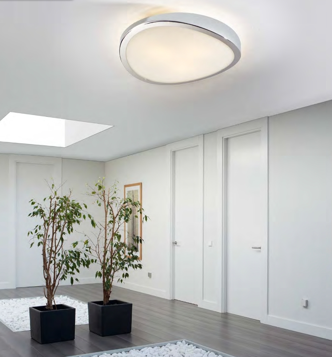Лаконичный потолочный светильник Leda с молочным стеклянным плафоном в обрамлении фигурного основания из металла цвета "блестящий хром". Лампочки 3 шт с цоколем E27, LED 10W входят в комплект. Оптимальная модель для оформления прихожей, коридора либо застекленного балкона, а также помещений с низким потолком.