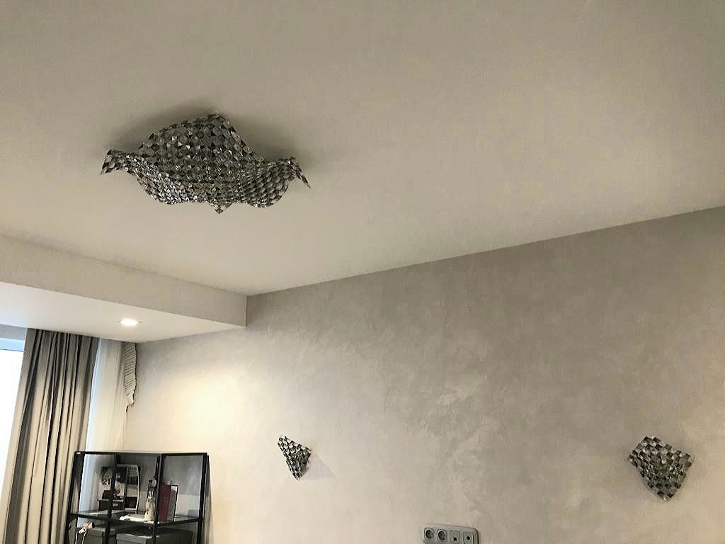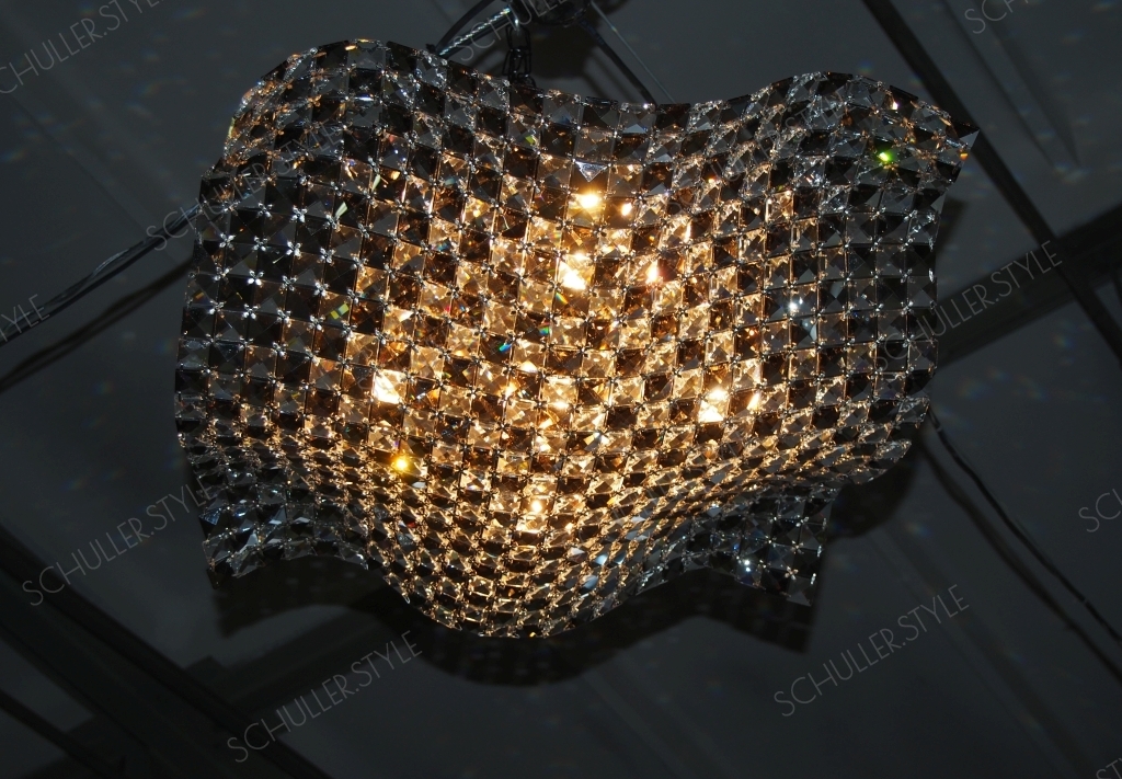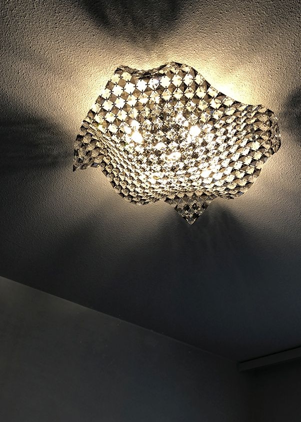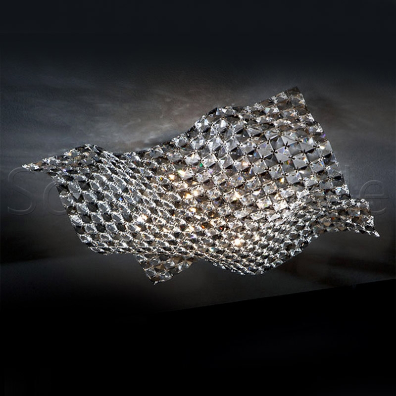 Стильный потолочный светильник из многочисленных прозрачных и дымчатых стеклянных кристаллов с огранкой, благодаря которой свет отражается и красиво бликует на всех окружающих поверхностях. Основание выполнено в цвете "хром". Сочетание материалов, волнообразная форма люстры делают данную модель ярким дизайнерским предметом современного стиля ардеко. Светильник универсален: его можно расположить в компактной прихожей, уютной спальне либо просторной гостиной, украсив потолок одновременно парой моделей. Для полноты комплектации в коллеции есть также и бра. В стоимость входят 5 лампочек G9 led 6W 3000 K.
