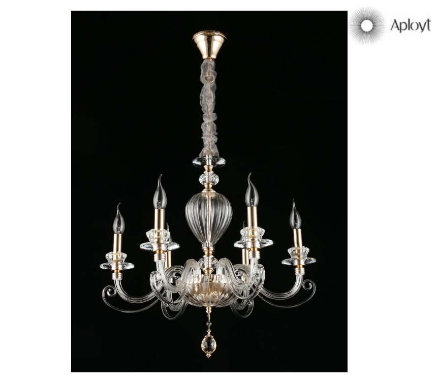 Изящная, сияющая при включении люстра из коллекции Daniele- украшение современного интерьера. Золотой глянец в отделке металлических деталей в сочетании с прозрачными стеклянными плафонами, подвесками и декоративными фигурными элементами, бликующими многочисленными гранями создают торжественность и легкость в помещении. Длина подвеса 80 см. Произведена в Гонконге.