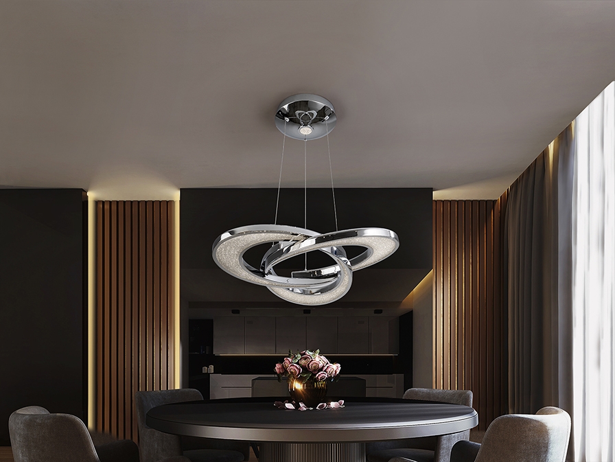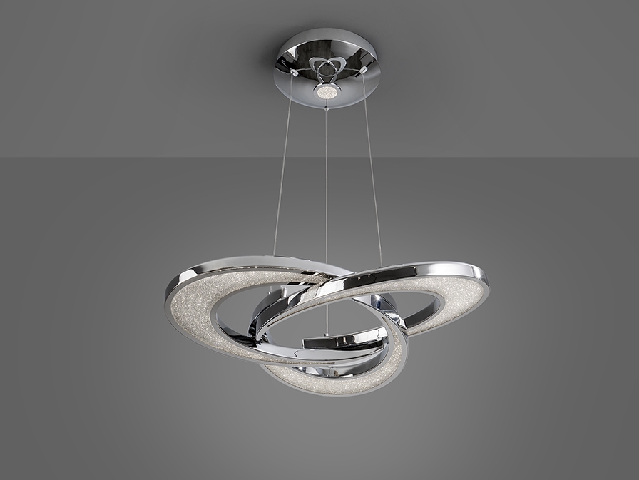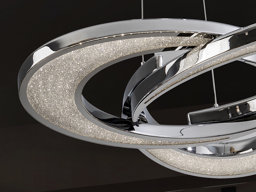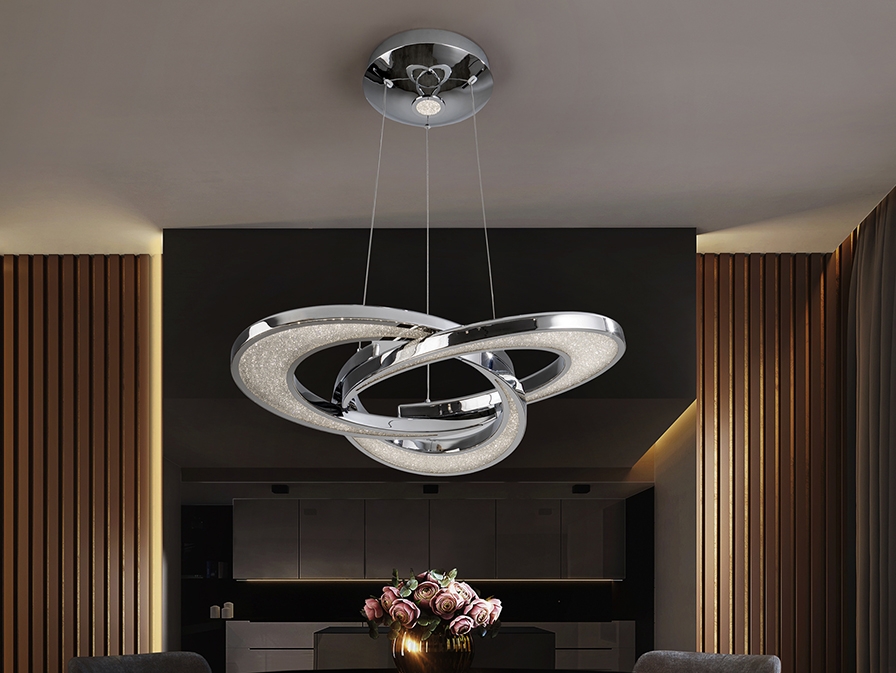Дизайнерская люстра Anisia с необычной формой плафона в современном стиле от фабрики Schuller- это стильное решение при выборе освещения в доме. Светильник изготовлен из металла с глянцевой хромированной отделкой, что придает ему элегантный вид. Отличительной особенностью этой модели являются многочисленные стеклянные кристаллы за прозрачным акриловым рассеивателем, которые искрятся при включении света. Благодаря светодиодной подсветке мощностью 50.4 W, светильник обеспечивает комфортное освещение, а уровень цветопередачи в 3865 Lm и цветовая температура 4000 К гарантируют естественный и приятный дневной свет. Диммируемый. При наличии возможности яркость можно регулировать с выключателя.