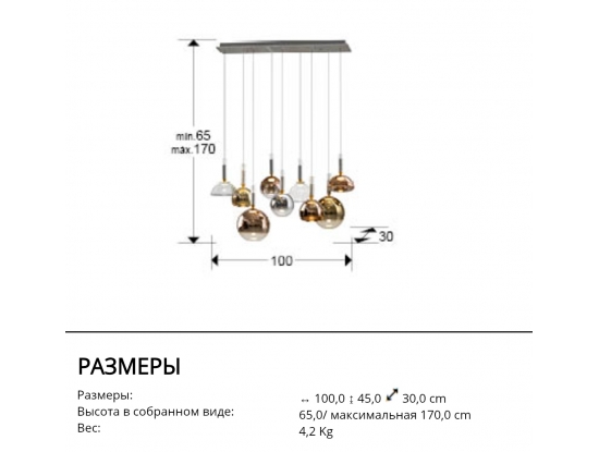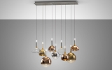 Люстра из коллекции Charlize артикул 312356 с 9 оригинальными разноцветными подвесами разной формы. Основание изготовлено из шлифованного алюминия темно-серого оттенка. Абажуры из прозрачного стекла и с зеркальным электролитическим покрытием медного, золотистого, серебряного оттенков. Светодиодная подсветка с опаловым акриловым рассеивателем в каждом плафоне. Возможна регулировка яркости. TRIAC драйвер и комплект для регулировки яркости. Цветовая температура: 3000 K. Световой поток: 1980 Lm. Mаксимальная мощность: 79 W. Средний срок службы рассчитан на 50 000 часов.