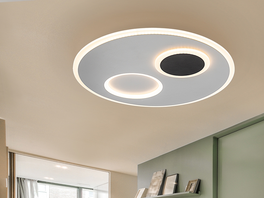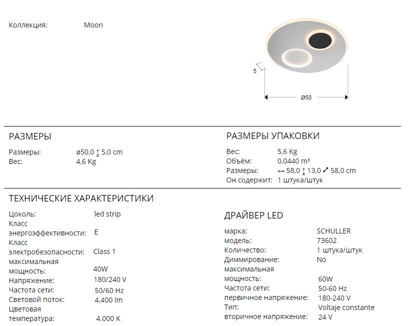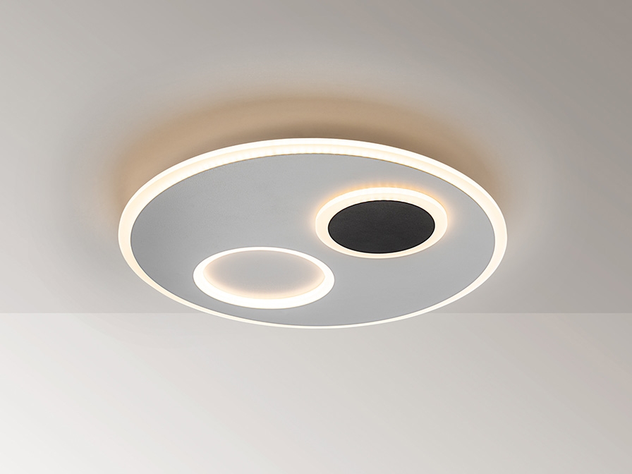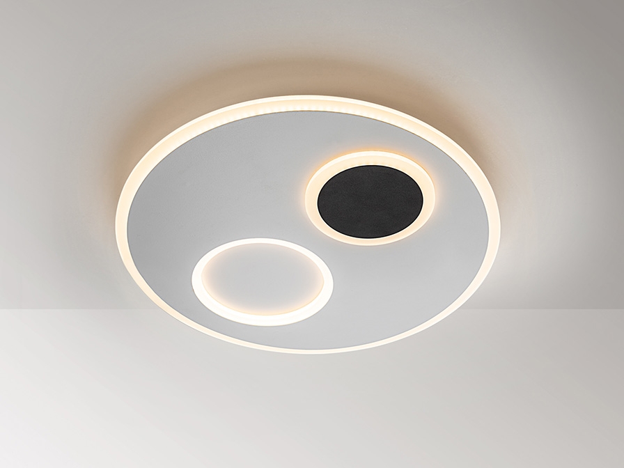 Оригинальная потолочная модель светодиодного светильника Moon изготовлена из металла в сочетании с аллюминием. Покрытие двух матовых цветов: белый и черный. По круглым контурам расположен акриловый диффузор опалового цвета. Данные освещения: 40W LED. 4400 lm. дневной свет 4000 K. Средний срок службы рассчитан на 30000 часов.
