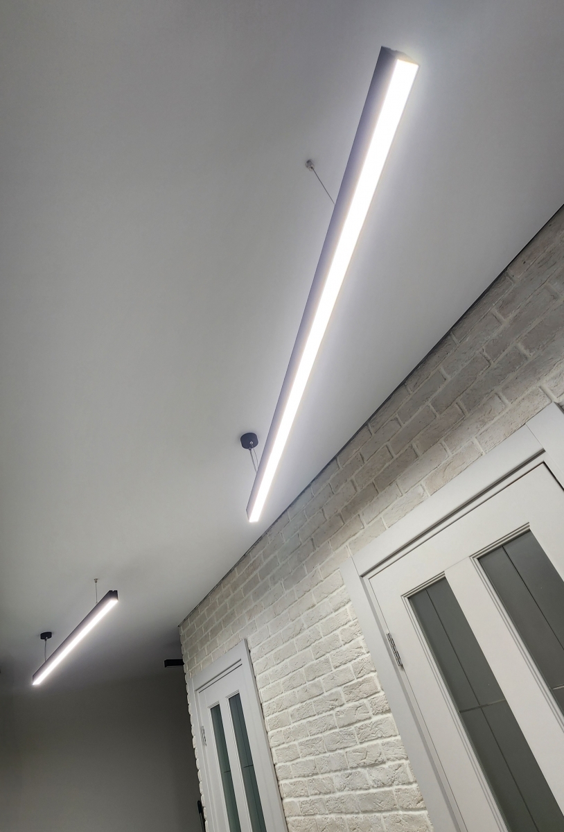 Прямой линейный светодиодный светильник Over Iter венгерского бренда Novotech в черном матовом цвете. Простая форма оптимальна для современных интерьеров, где нужен минимализм либо традиционные потолочные споты ставить уже нет желания. Данную модель можно крепить как непосредственно на потолок, так и на тросах, входящих в комплект. Высота подвешивания регулируется до 120 см. Цветовая температура 4000 К (холодный дневной свет). Световой поток 3400 Lm.