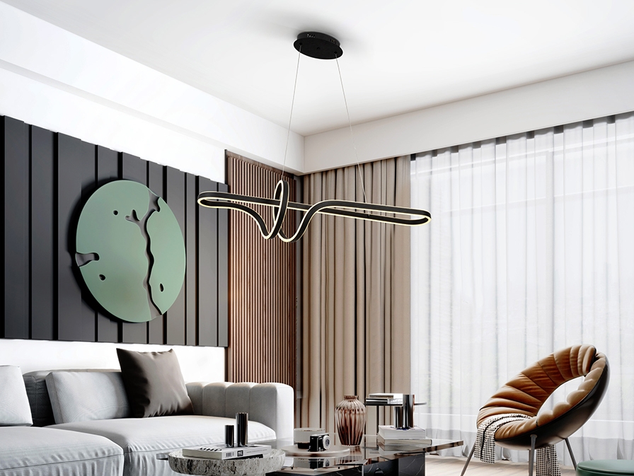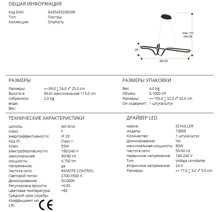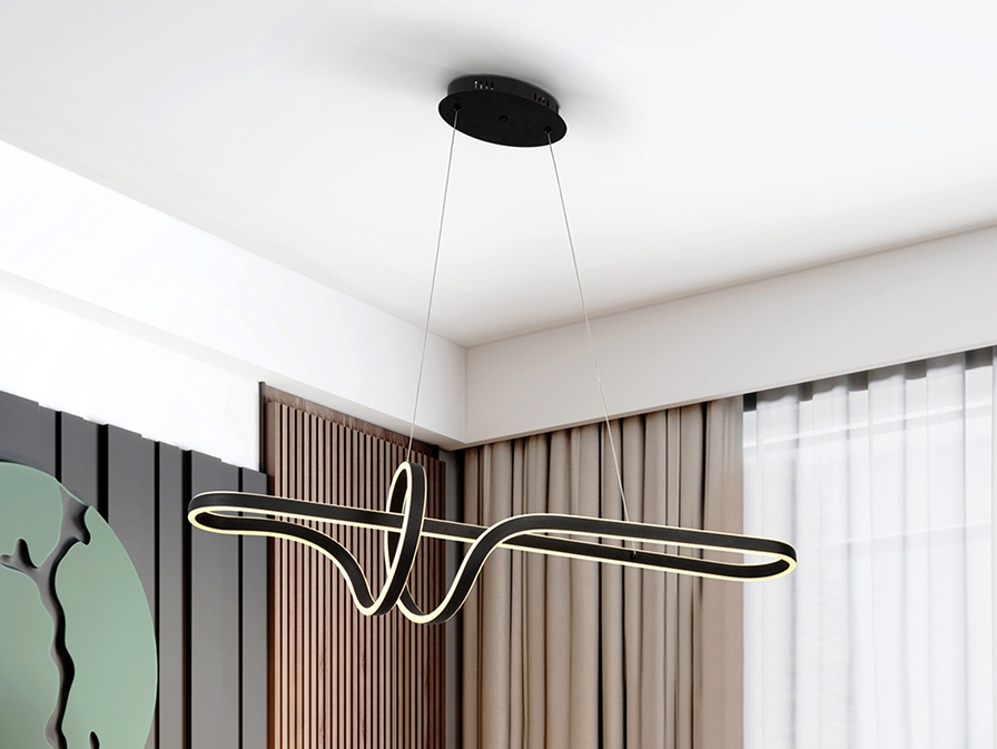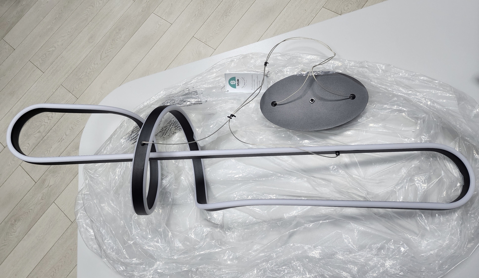 Современный актуальный дизайн светодиодного светильника Sinphony прекрасно подходит для ассиметричных либо вытянутых пространств, которые нужно подсветить. Длина модели 99 см ширина 25 см. Изготовлена с регулируемой яркостью и возможностью изменения цветовой температуры. Основание из стали и легкого алюминия матово-черного цвета. Рассеиватель из силикона опалового цвета расположен по контуру ленточного минималистичного плафона с парой завитков. Регулируется по высоте подвешивания до 115 см. Светодиодное освещение 55 Вт, 4700 Лм, 2700-5500 К. В комплект поставки входит пульт дистанционного управления.