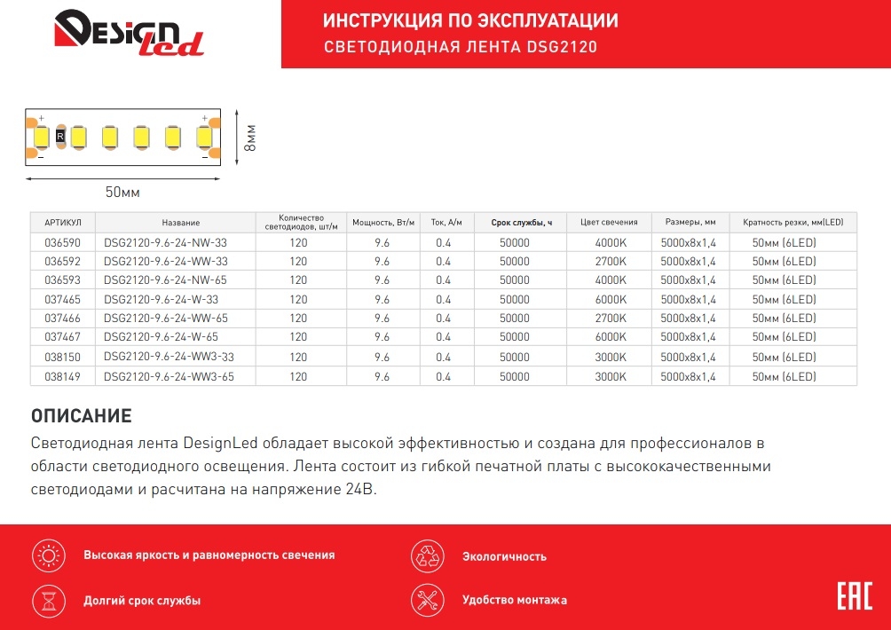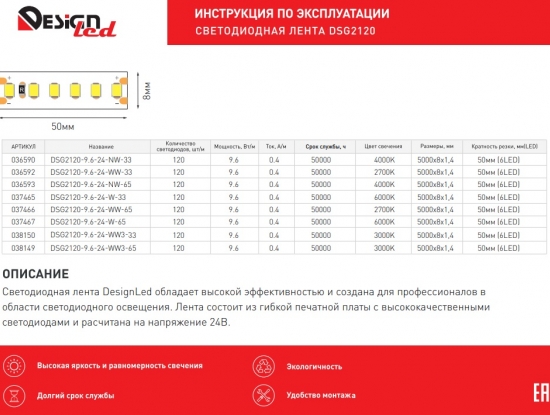Лента светодиодная DSG 2835 WW 120L-V24-IP33, 3000K, 120 LED, 9,6 W/m, LUX стабильное теплое свечение для создания акцентной подсветки в интерьере. Упаковка 5 м. Продается кратно 5 м.