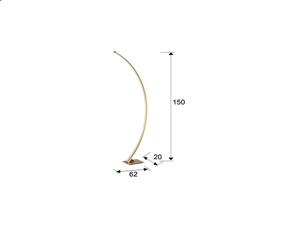 Современный светодиодный торшер Arcus с фигурной формой ножки высотой 150 см. Оригинальная и минималистичная модель изготовлена из металла и шлифованного аллюминия с матовым золотым покрытием. Опаловый силиконовый рассеиватель расположен с двух сторон по контуру светильника. Данные светового потока: 38W LED, 1800 Lm, теплый свет 3000 K. Средний срок службы напольного светильника рассчитан на 50000 часов.