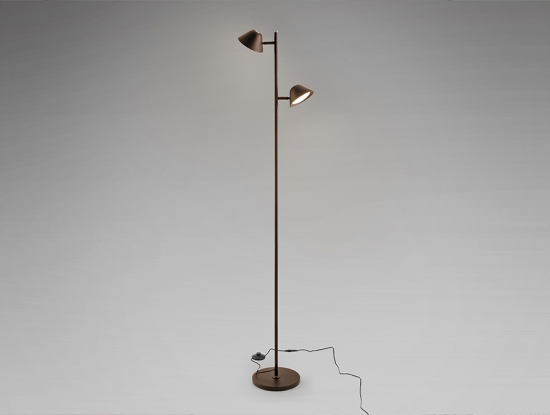 Лаконичный современный led торшер из коллекции Taros 2025 года. Отделка металлического основания с использованием алюминия в цвете темной бронзы. Освещение 2 поворотных плафонов обтекаемой формы со светодиодными источниками света легко регулировать с пульта управления либо с кнопки. Включать и выключать каждый можно по отдельности. Цветовая температура настраивается от теплого света 3000 К до холодного 6500 K. Мощность 20W LED, 1800 lm. Диффузоры опалового цвета.