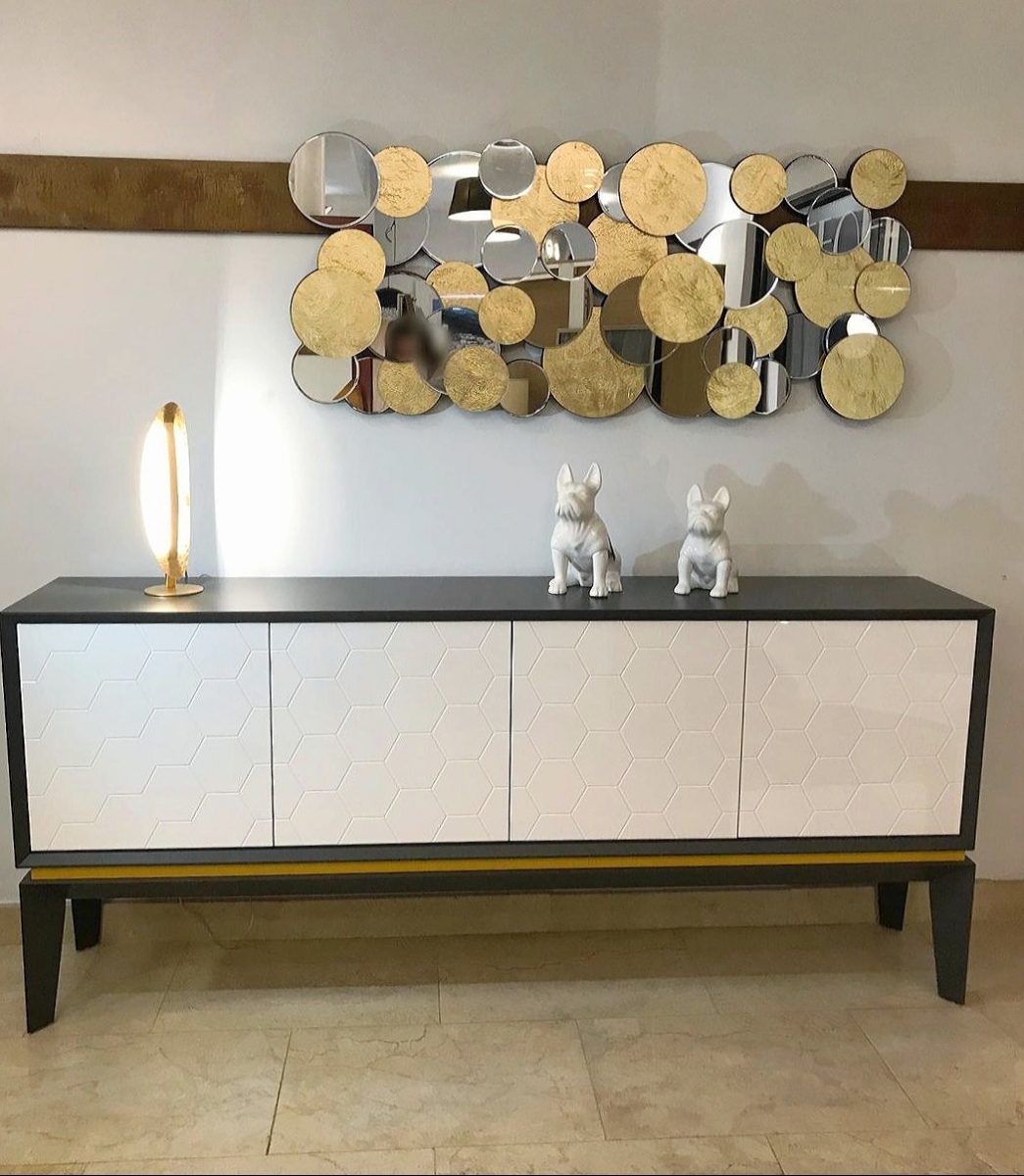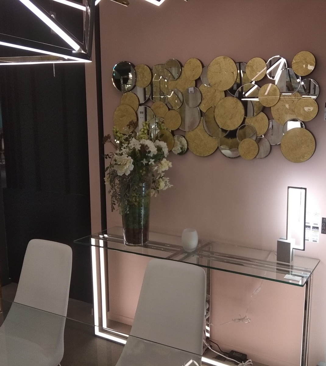 Точка притяжения взгляда в интерьере- объёмный зеркальный настенный декор из коллекции Cirze от фабрики Schuller. Красивое сочетание зеркальных кругов с фацетом и кругов с золотой фольгой под стеклом, расположенных в разных плоскостях относительно друг друга, создаёт роскошное украшение для любого современного помещения. Это прямоугольное дизайнерское зеркало арт. 725751 легко купить в Москве в нашем интернет- магазинe из наличия. Основание у него сделано из резной МДФ чёрного цвета. Размеры: 60*120 см. Фабричное крепление предусмотрено в вертикальном и горизонтальном положении. Благодаря тому, что фабрика производит две модели в коллекции, легко выбрать ту, которая идеально впишется в Ваш интерьер.