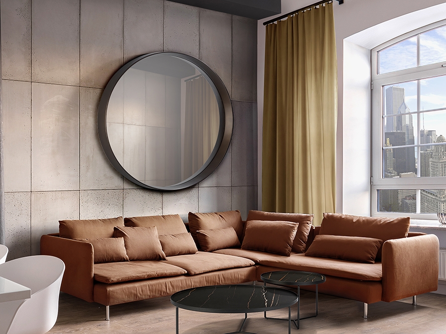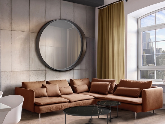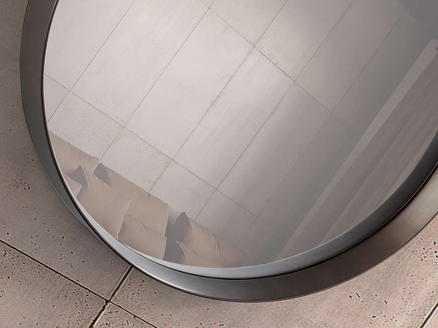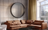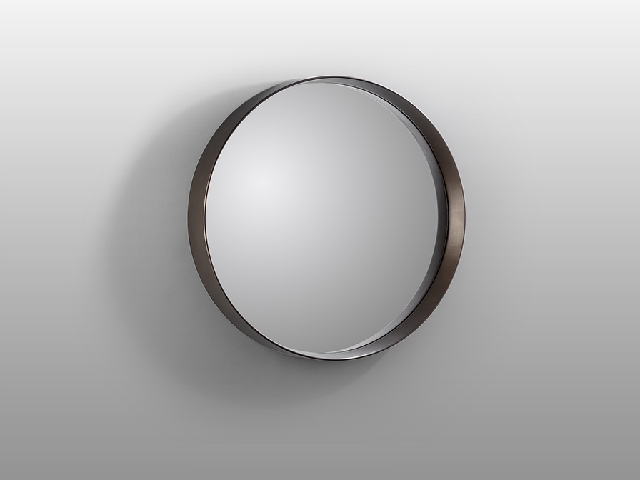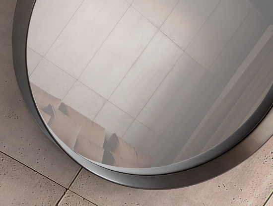 Широкое круглое зеркало диаметром 102 см из коллекции Mia арт.646260 в раме из полиуретана в стильной темно-бронзовой отделке. Зеркальное полотно сделано без фацета и утоплено внутри рамы глубиной 7,5 см.