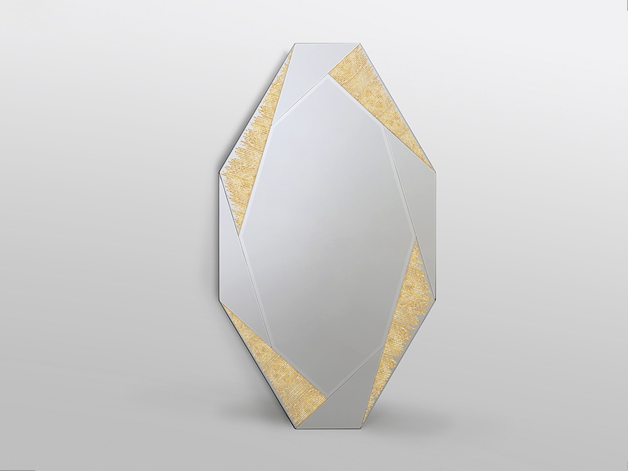 Оригинальное большое зеркало- восьмигранник высотой 180 см из коллекции Laverna от фабрики Schuller. Новинка августа 2021. Зеркальные треугольники рамы сочетаются с изящными тонкими полосками золотой фольги под стеклом. Два варианта навески: вертикально и горизонтально.