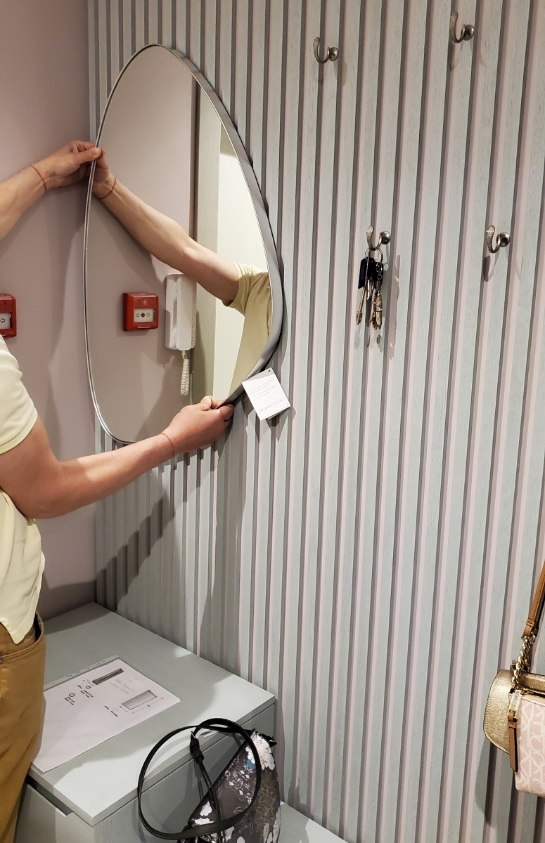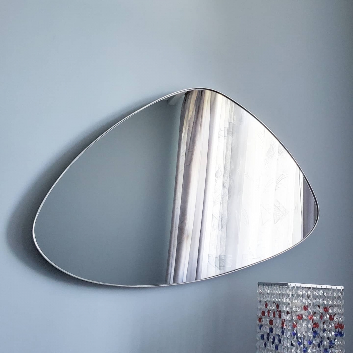Необычное зеркало трёхугольной формы из коллекции Orio фабрики Schuller выпущено в новом серебряном цвете. Тонкая фигурная рама из MDF покрыта серебряной фольгой. Благодаря креплениями для установки в горизонтальном или вертикальном положении зеркало в разных ракурсах смотрится по-разному. Интересно оно смотрится вместе с консолью либо туалетным столиком в спальне. Эту модель можно скомбинировать и с круглым либо квадратным зеркалом в такой же отделке, и тогда интерьер интересно "заиграет" добавляя света, зрительно расширяя пространство.