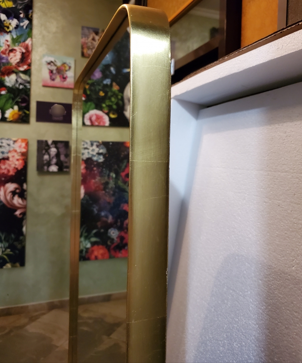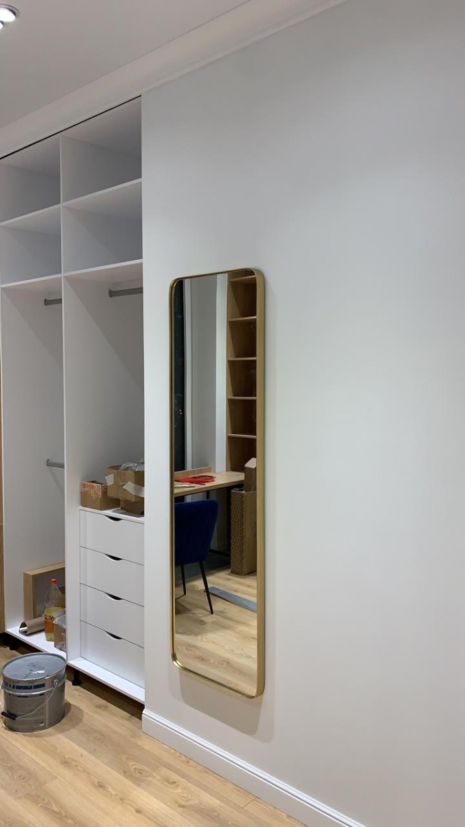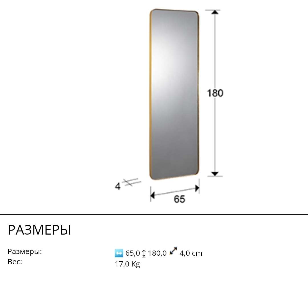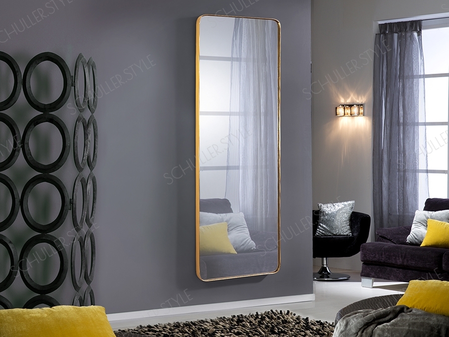 Прямоугольное высокое зеркало Orio шириной 65 см высотой 180 см в тонкой золотой раме c красивым покрытием из золотой фольги. Скругленные углы- отличительная особенность всей одноименной коллекции, которая представлена и круглыми, и квадратными, и даже треугольными зеркалами различных размеров, открывая широкие возможности при оформлении частного либо общественного интерьера. Большие зеркала украшают окружающее пространство, создавая зрительный эффект его расширения. В каталоге зеркал Schuller легко выбрать и купить наиболее подходящую модель по внешнему виду и габаритам.