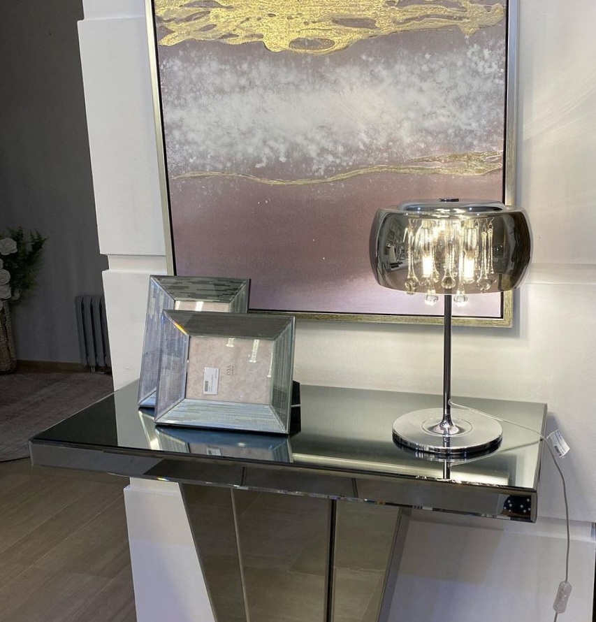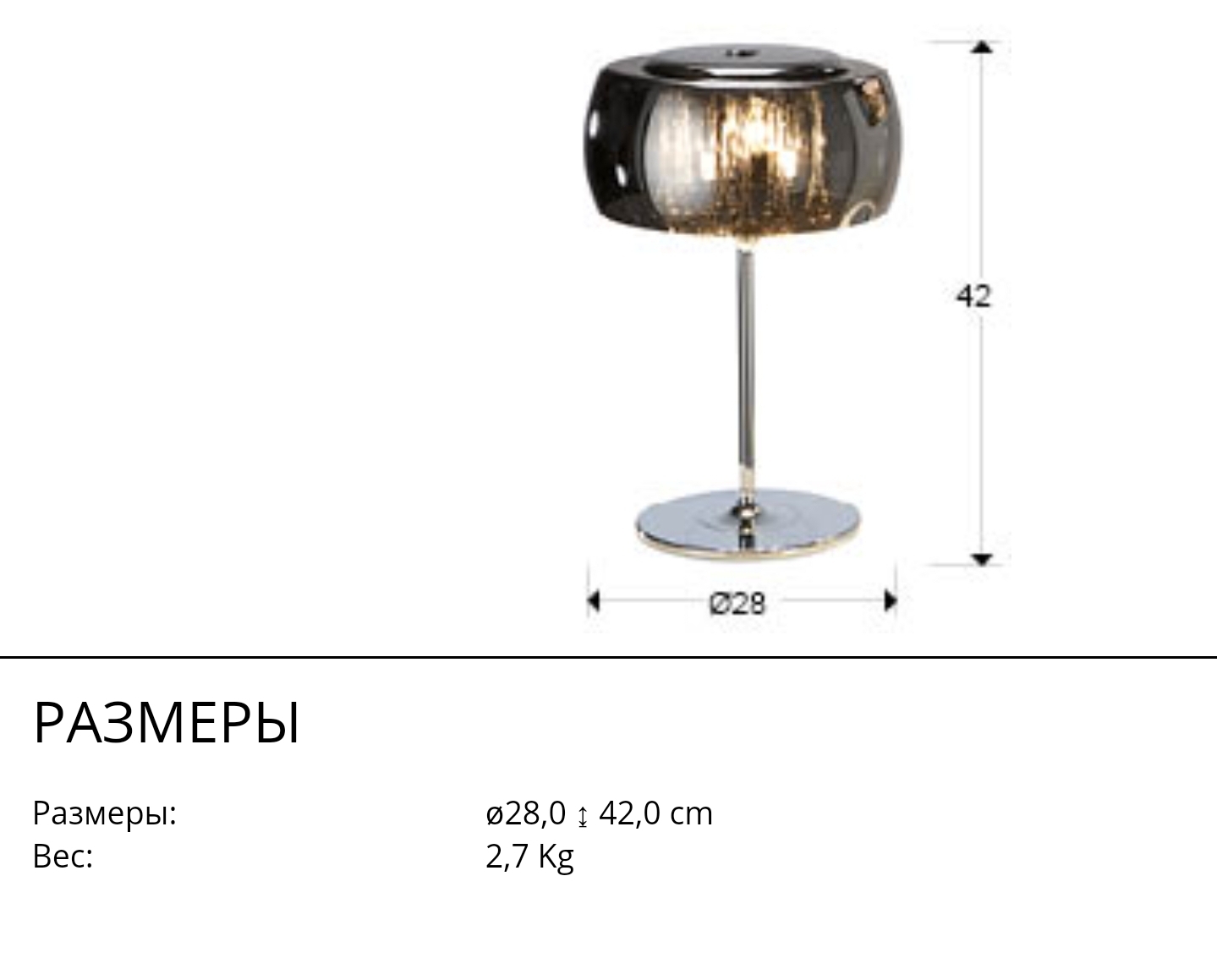 Современная настольная лампа Argos c круглым зеркальным плафоном и изящными прозрачными каплевидными подвесками разной высоты внутри него. Основание изготовлено из металла с глянцевым покрытием "хром". Лампочки 3 шт с цоколем G9 максимум 40 W.