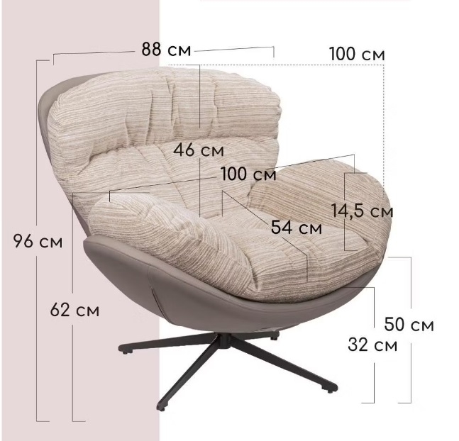 Вращающееся на 360 градусов лаунж- кресло BLISS на устойчивой черной металлической ножке- это уютное решение для современного интерьера. При его изготовлении была выбрана стильная комбинация материалов обивки: из мягкого шенилла у внутренней обивки и прочной экокожи у внешней, обеспечивая максимальный комфорт. Модель имеет эргономичную высокую спинку, удобную посадку и продуманный эргономичный дизайн.