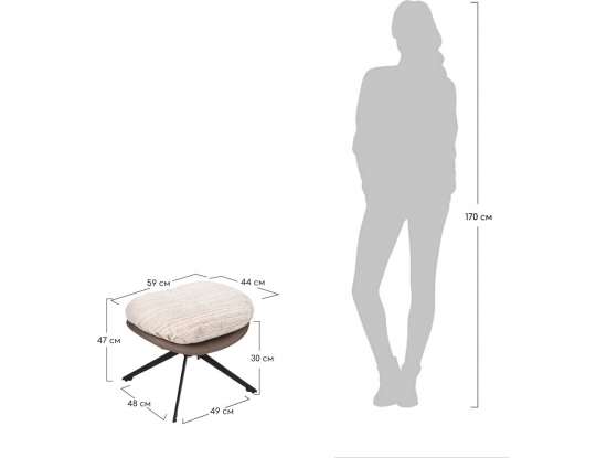Оттоманка BLISS- компаньон к креслу из той же коллекции, которую можно использовать как подставку для ног либо самостоятельный предмет интерьера для отдыха. Ножки черного цвета изготовлены из прочного металла, что обеспечивает ее устойчивость и долговечность. Обивка основания выполнена из комфортной, мягкой экокожи. Объемная подушка из шенилла на "липучке" при необходимости легко снимается.