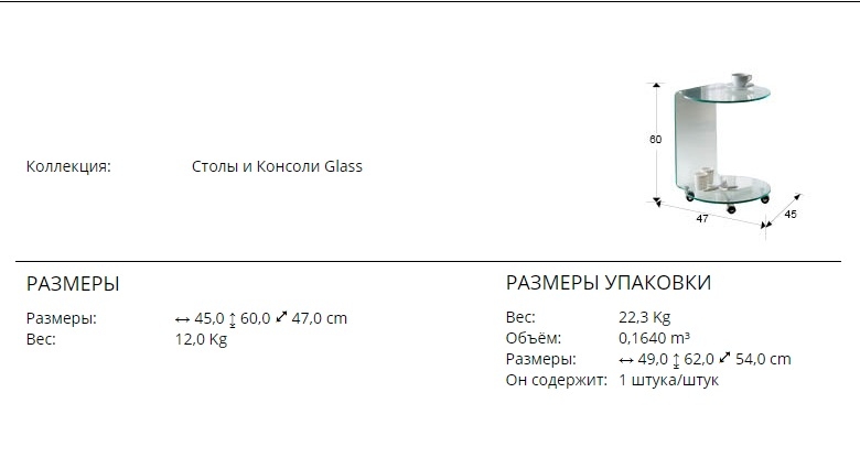 Современный круглый столик- тележка Glass на удобных для перемещения колёсиках сделан из изогнутого прозрачного закаленного стекла толщиной 10 мм. Сохраняет "легкость" пространства, не утяжеляя интерьер. На две полочки диаметром 45 см можно положить планшет, телефон или поставить чашечку ароматного кофе.