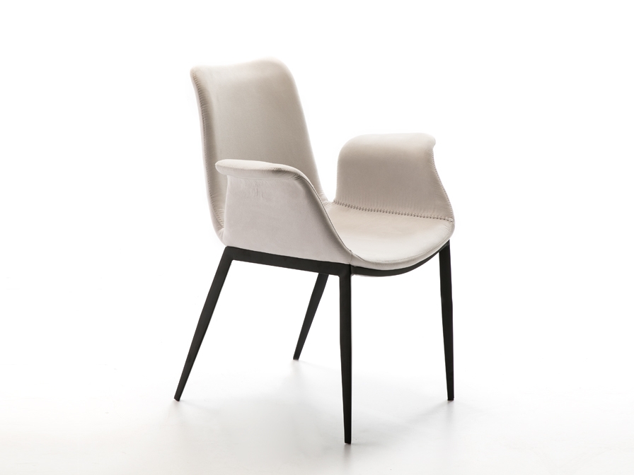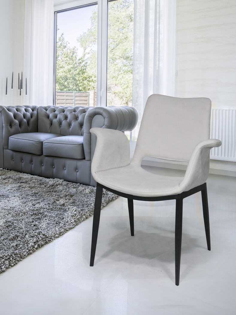 Стильный дизайнерский стул- полукресло Sowa с фигурными подлокотниками от фабрики Schuller изготовлен согласно мировым тенденциям в дизайне интерьеров. Сочетание стройного металлокаркаса ножек в черной матовой отделке и контрастной молочно- белой обивки с белой отстрочкой по периметру дает возможность меблировать интерьеры с разными стилевыми решениями. Спинка высотой 46 см и сиденье изготовлены из фанеры и пенополиуретана. Ткань бархатистая "под замшу" 100% ПЭ.