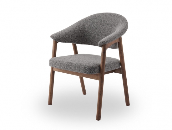 Стул полукресло ARCHEE с мягкими подлокотниками из тканевой обивкой серого цвета. Ножки изготовлены из массива ясеня в цвете орех. Ширина стула 63 см, глубина 59.5 см, высота 83.9 см, высота сидения: 46.2 см.