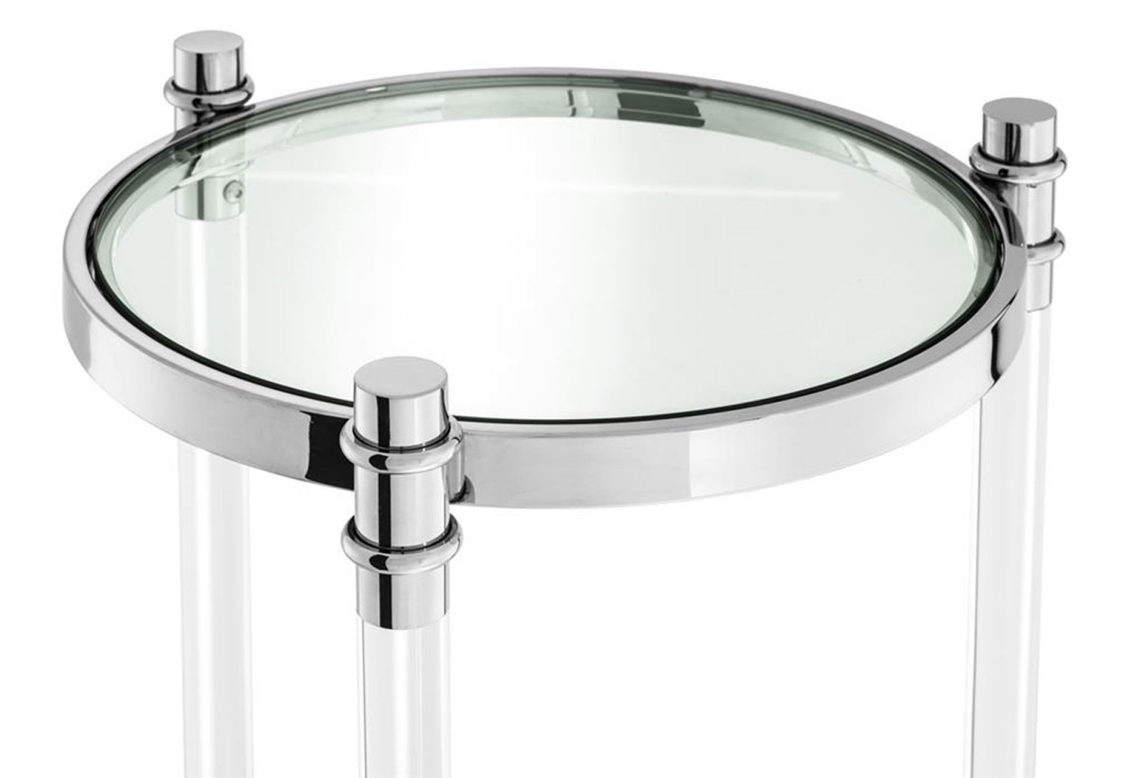 Современный высокий столик Trento от популярного голландского бренда Eichholtz .Высота 91 см даёт возможность использовать его, как колонну в прихожей либо гостиной. Прозрачная стеклянная столешница и акриловые прозрачные ножки зрительно не отвлекают внимания, основной акцент сделан на хромированных деталях ножек.