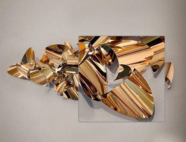 Настенный декор Camile арт.829809 изготовлен из листовой нержавеющей стали в виде композиции из изогнутых (выпуклых, вогнутых) глянцевых лепестков с красивым покрытием цвета розового золота. Готов к навеске как в горизонтальном, так и в вертикальном положении на выбор по месту. Максимальный габарит у барельефа 160 см. Модель из каталога 2025 года фабрики Schuller.