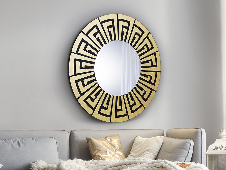 Оригинальное зеркало Aquiles от бренда Schuller с греческими мотивами, оформленными золотой фольгой под стеклом. Основа изготовлена из МДФ чёрного цвета. Купить любое понравившееся зеркало из каталога можно в нашем интернет-магазине в Москве с доставкой по России.