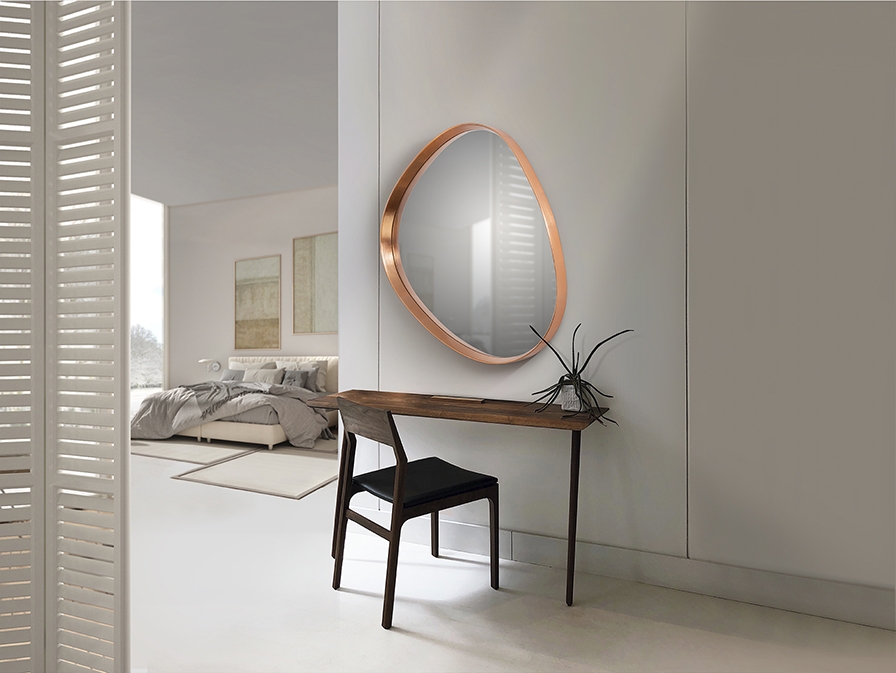 Фигурное зеркало- треугольник Julie арт. 607322 от испанского бренда Schuller со стильйно рамой со скругленными углами на основе из MDF. Отделка в цвете розового золота актуальна при оформлении современных интерьерных пространств. Навеска возможна в разных положениях.