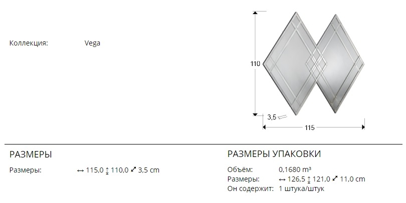 Эффектная геометрия. Современное зеркальное панно- композиция Vega из двух больших зеркальных ромбов на единой черной основе из МДФ, высотой 110 см в обрамлении рамы из зеркальных элементов. Не нужно ничего клеить, собирать- всё уже готово для навески и оформления современного интерьера!