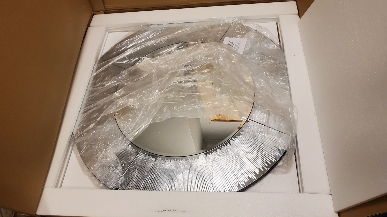 Современное круглое зеркало фабрики Schuller из коллекции Aurora, которая отличается оригинальной зеркальной рамой с фрагментами серебряной фольги в виде узких полосок под стеклом. серебряной фольги, добавляющих зеркалу изысканности. Центральный зеркальный круг выполнен с декоративным фацетом. Зеркало большое- диаметром 100 см, закреплено на основе из MDF, покрытой чёрной краской. Купить любую красивую модель в нашем интернет-магазине легко, оформив заказ на сайте, по телефону либо в мессенджере.