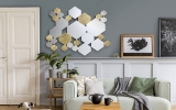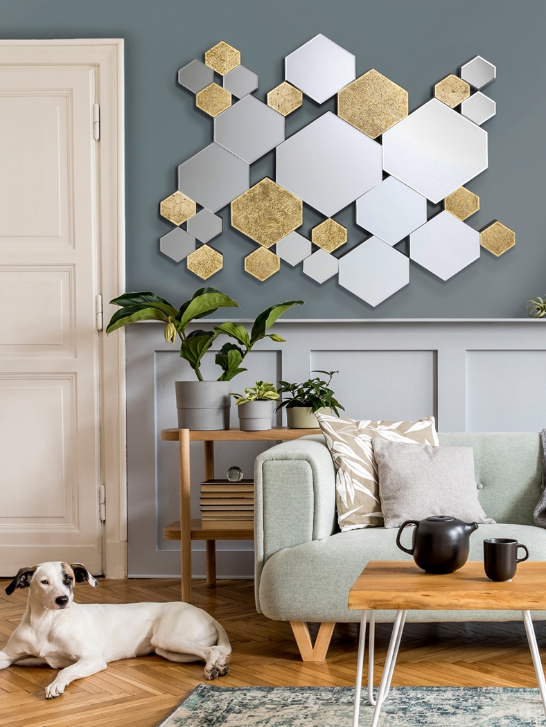 Стильный зеркальный декор на стену от фабрики Schuller. Оригинальные зеркала- шестигранники разных размеров с фацетом по периметру красиво скомбинированы с декоративными, у которых эффектная золотая фольга защищена сверху стеклом. Основание единое из черной резной МДФ. Навеска возможна как горизонтально, так и вертикально. Дизайнерский декор- это всегда актуальное украшение для современного интерьера, которое даёт возможность создать уникальное уютное пространство для повседневной жизни. Панно можно заказать в нашем интернет магазине на сайте, либо позвонив по телефону в Москве.