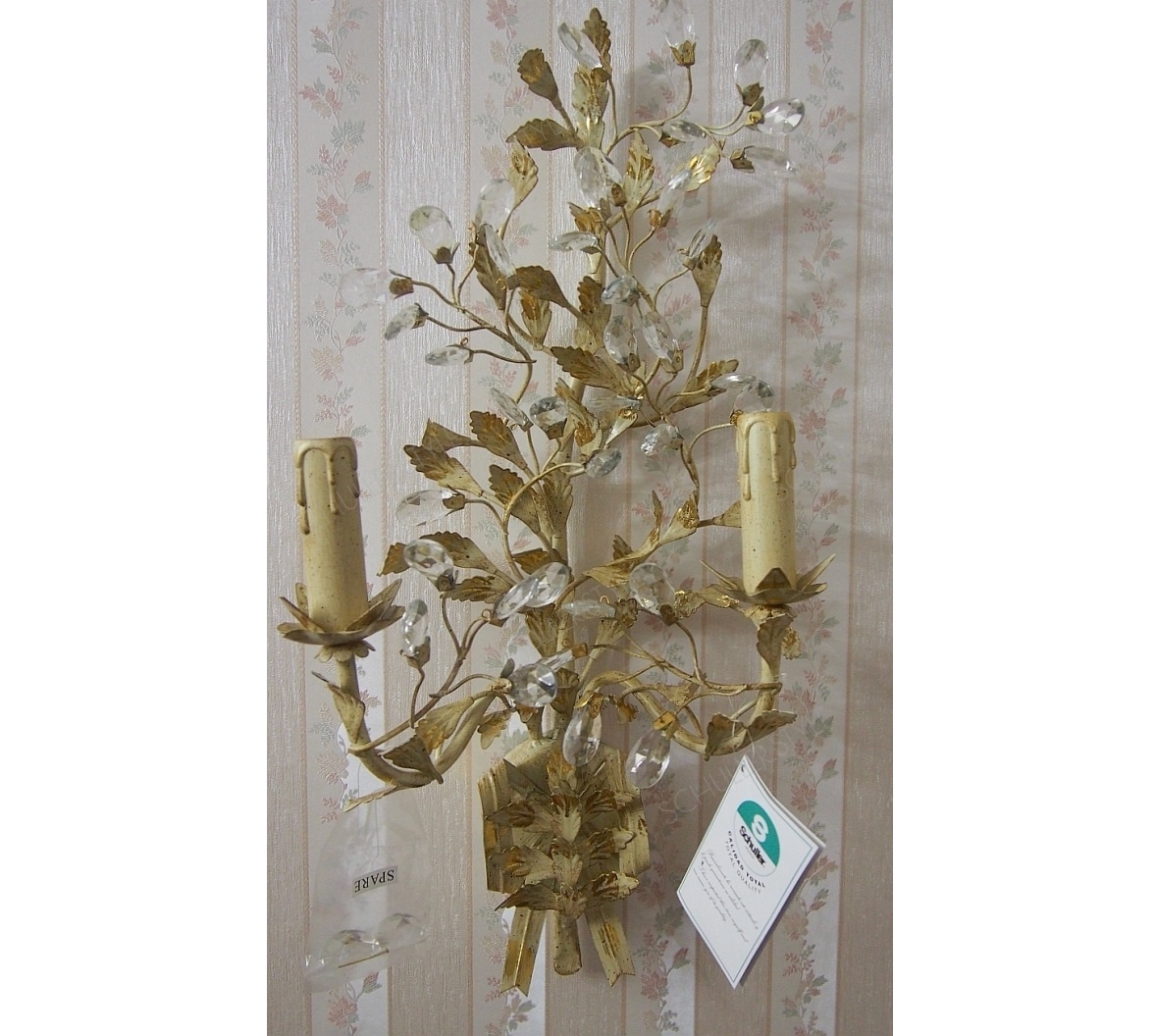 Двойное большое бра во флорентийском классическом стиле от испанского бренда Schuller. Основание выполнено в цвете слоновой кости с золотой патиной. Многочисленные капли- прозрачные стеклянные кристаллы с огранкой служат изящным украшением настенного светильника в форме витиеватых веточек с листьями. Два варианта модели доступны к покупке: с абажурами из коричневой тафты с небольшими подвесками по периметру и без них.