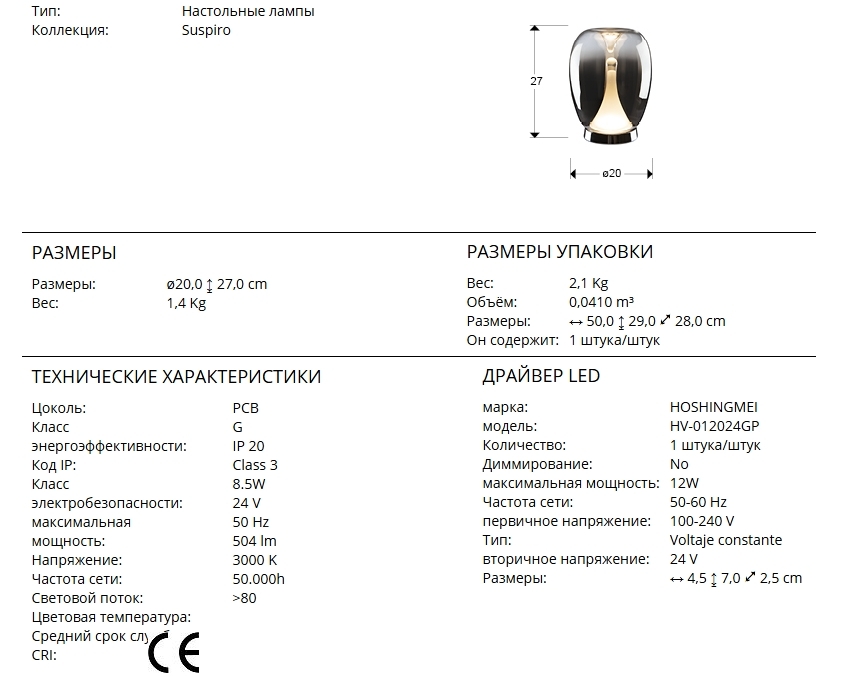 Интересная настольная лампа Suspiro с алюминиевым хромированным основанием и яйцеобразным плафоном диаметром 20 см из выдувного стекла с градиентным зеркальным покрытием, которое отражает окружающий интерьер. Плафон в центре слегка углублен. Внутри светильника расположен, словно сталактит- вертикальный стеклянный рассеиватель опалового цвета. Светодиод мощностью 8,5 Вт, 504 Lm, теплый свет 3000 К.