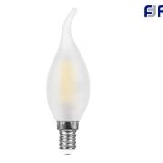 Светодиодная лампочка "Свеча на ветру" от российского бренда Feron с цоколем E14, 15Вт, дневной свет 4000K, матовая. Световой поток 1280lm. Соответствие лампы накаливания 140Вт. Индекс цветопередачи 80Ra.