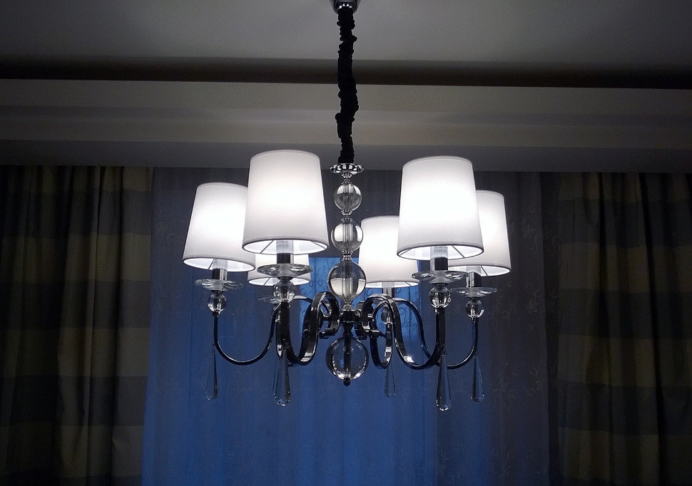 Крепление абажуров- на патрон. Лампочки: 6шт Е14*60Вт. Высота люстры указана без учёта крепления потолочной чаши.