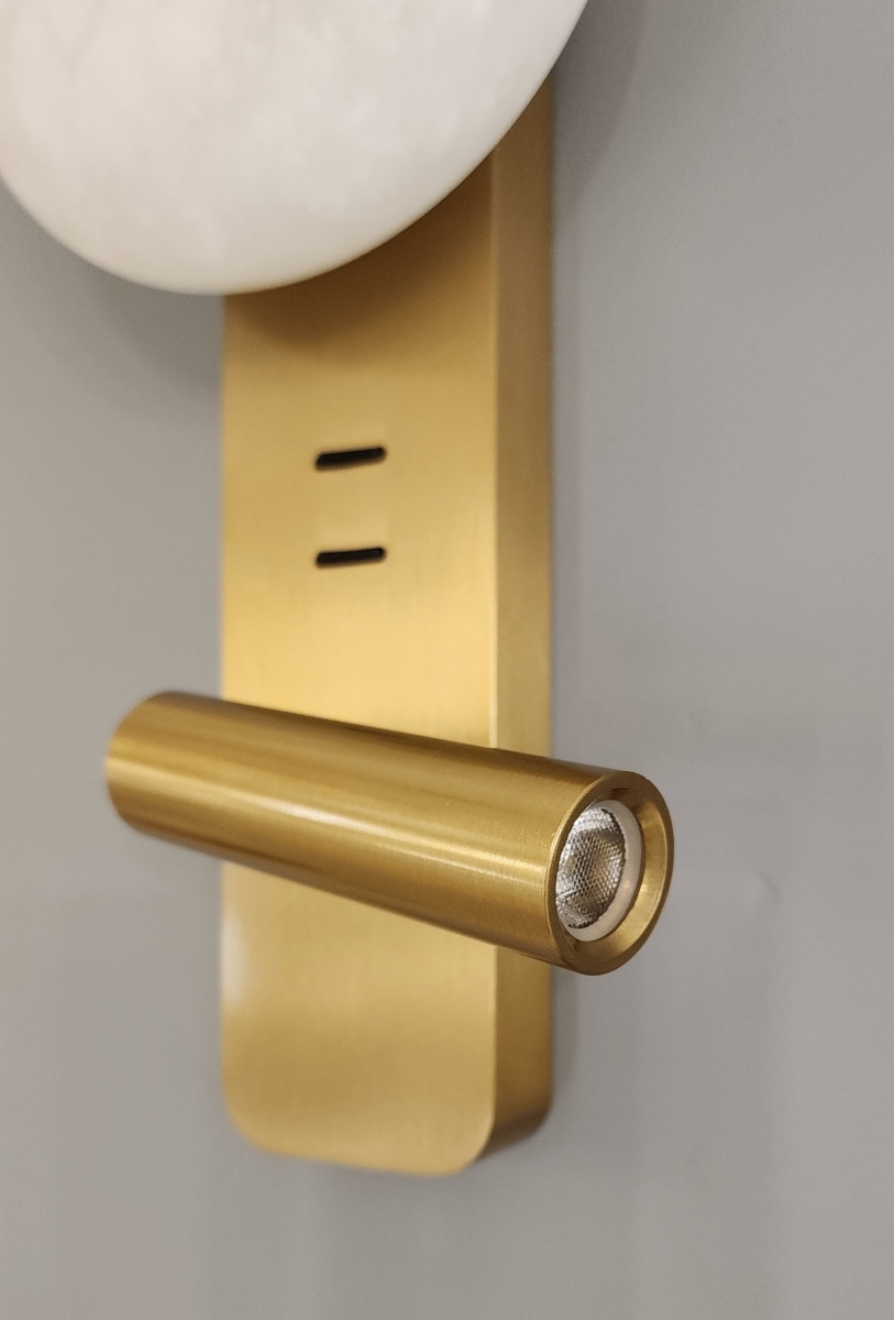 Настенный светильник 7164/9WL из коллекции ALBERGO изготовлен с металлическим корпусом бронзового цвета. Всего 2 комфортных источника теплого света: 5W у матового плафона из испанского алебастра диаметром 15,6 см в верхней части бра и 3W у поворотного цилиндрического спота в нижней. Угол вращения спота ― 355°, угол рассеивания ― 60°.