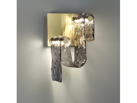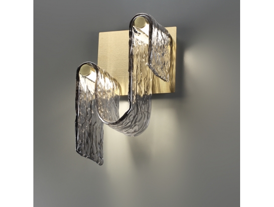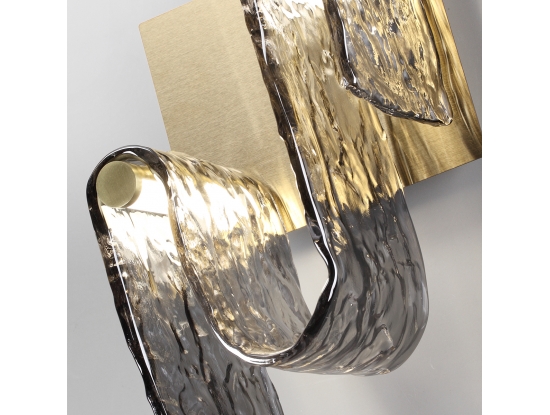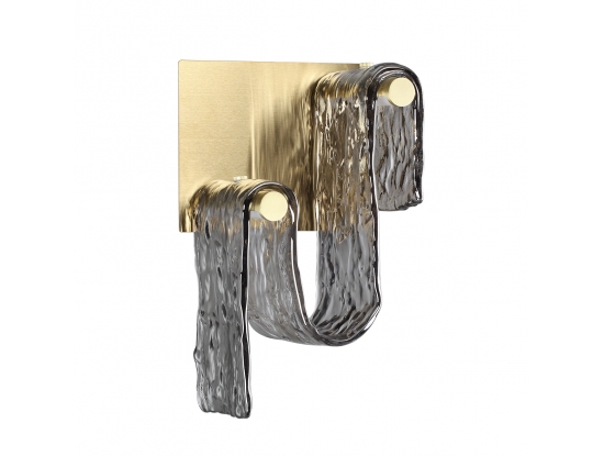 Современное бра из коллекции Flow бренда Odeon light с эффектным волнообразным плафоном из фактурного дымчатого стекла в сочетании с золотым настенным основанием с брашированной поверхностью. Светодиодный светильник общей мощностью 11 W дневного света 4000К.