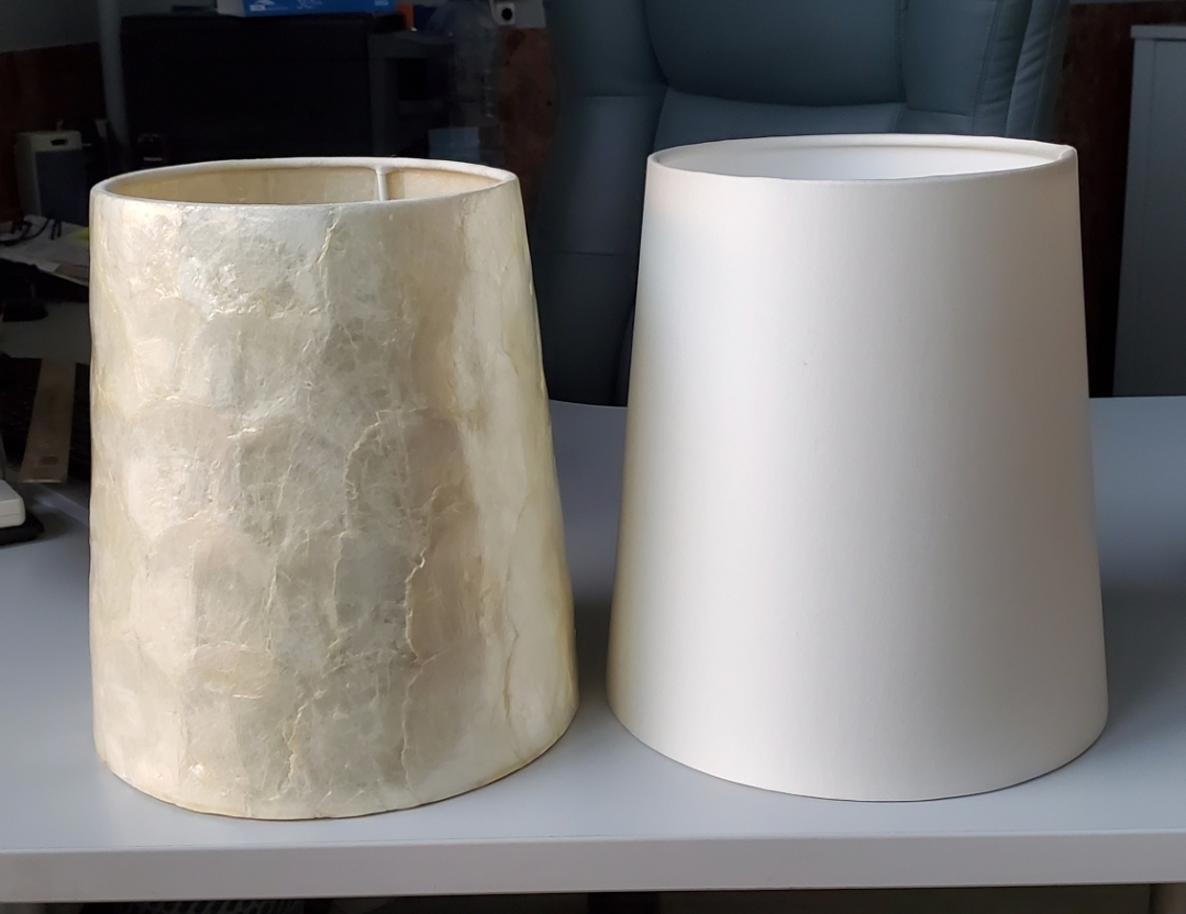 При желании можно изготовить идентичный абажур из атласной ткани жемчужного оттенка с доплатой.