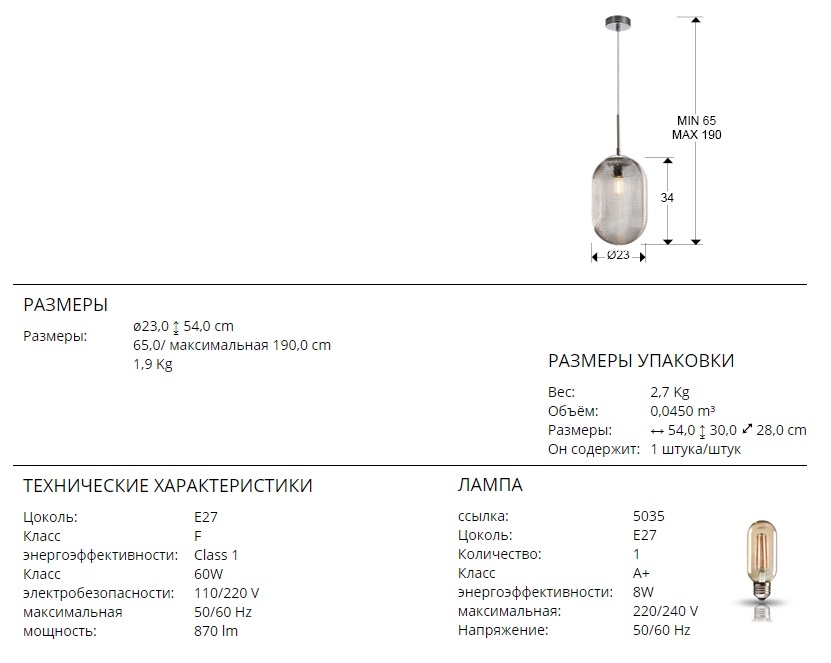 Подвес из коллекции Tensai с объемным плафоном высотой 34 см из рифленого прозрачного стекла с каркасом из металла с покрытием "хром". Высота регулируется по необходимости от 65 до 190 см. Лампочка: 1шт. с цоколем E27 LED 8 Вт уже в комплекте. Максимально допустимая мощность- 60 Вт.