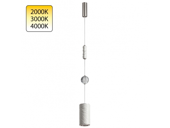 Эффектная белая модель подвеса- цилиндра из коллекции Riviera с отделкой металла "сатинированный никель". Керамика ручной работы притягивает внимание к лёгким волнам на плафоне диаметром 10 см. Стеклянный, как прозрачная вода, шарик с пузырьками легко устанавливается в желаемое положение при регулировке высоты подвешивания, которая меняется до 240 см. Общая led мощность 18 Вт, свет светит и вниз, и вверх с возможностью изменения цветовой температуры в трех режимах от очень теплого, камерного 2000К до теплого 3000К и дневного 4000К. Переключатель находится на корпусе светильника. Бренд Odeon light.