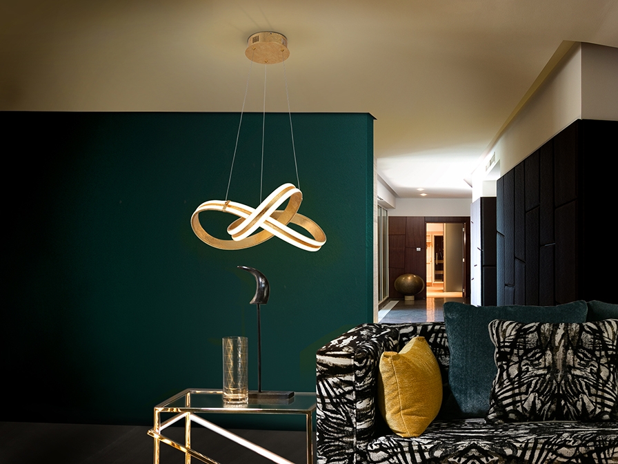 Современная модель светодиодного подвесного светильника Lazas сделана из стали и алюминия с эффектным покрытием из золотой фольги. Акриловый рассеиватель опалового цвета расположен вдоль перекрещивающихся лент абажура . 56W LED, 2700 Lm, теплый свет 3000 K. Средний срок службы рассчитан на 30000 часов.