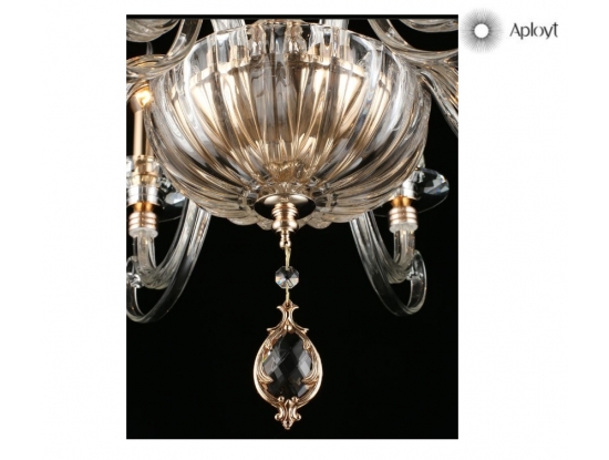 Изящная, сияющая при включении люстра из коллекции Daniele- украшение современного интерьера. Золотой глянец в отделке металлических деталей в сочетании с прозрачными стеклянными плафонами, подвесками и декоративными фигурными элементами, бликующими многочисленными гранями создают торжественность и легкость в помещении. Длина подвеса 80 см. Произведена в Гонконге.
