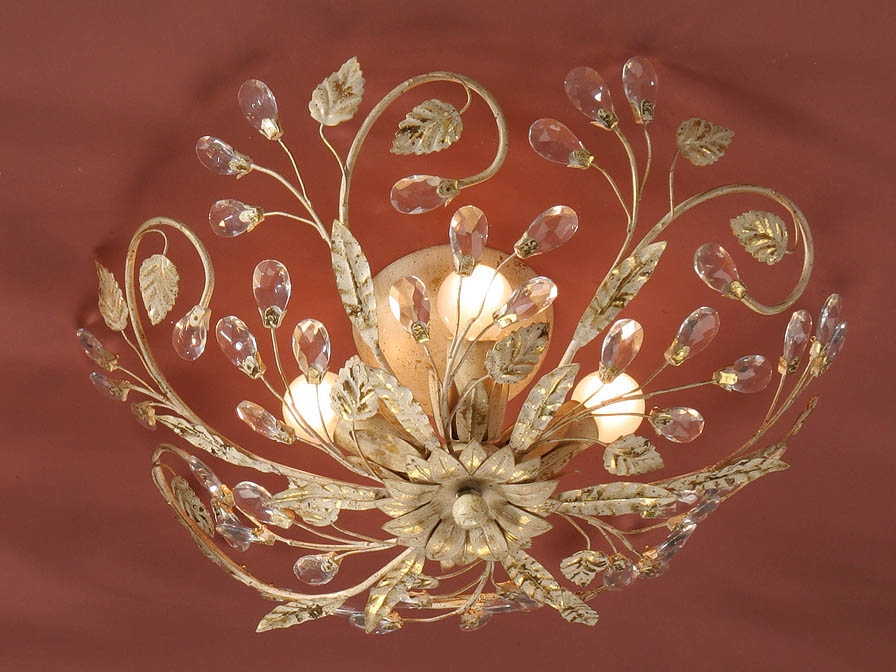 Потолочный светильник Verdi во флорентийском стиле с основанием из металла в цвете топлёного молока с эффектной отделкой золотой патиной. Украшением этой классической люстры является россыпь многочисленных капель- кристаллов из прозрачного стекла с огранкой. Светильники красиво смотрятся в современных неоклассических интерьерах.