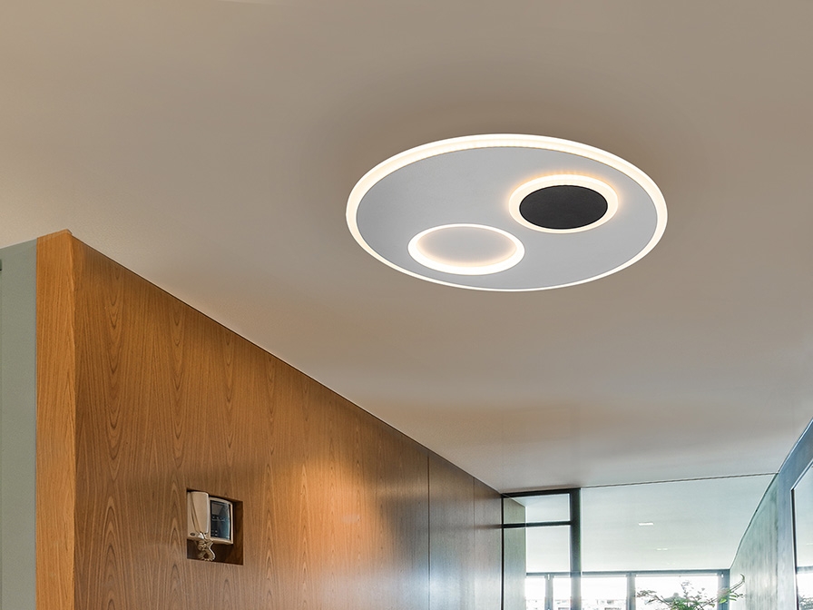 Оригинальная потолочная модель светодиодного светильника Moon изготовлена из металла в сочетании с аллюминием. Покрытие двух матовых цветов: белый и черный. По круглым контурам расположен акриловый диффузор опалового цвета. Данные освещения: 40W LED. 4400 lm. дневной свет 4000 K. Средний срок службы рассчитан на 30000 часов.