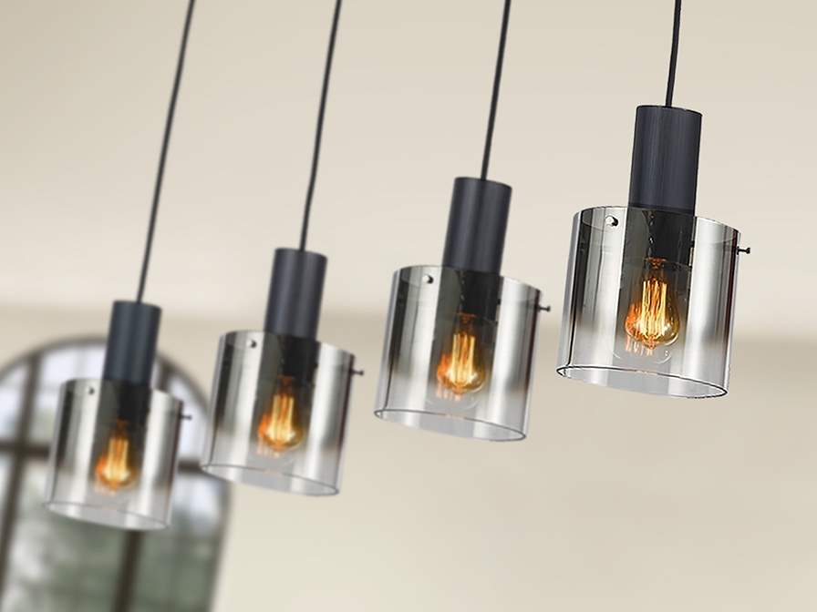 Стильный подвесной светильник Venize в чёрном цвете изготовлен из металла, окрашенного в матовый цвет. 4 цилиндрических плафона диаметром 15 см из зеркального стекла с акцентной отделкой металлическими деталями- держателями. Кабель черный текстильный регулируется по высоте у каждого подвеса. Модель одинаково интересна в разных помещениях интерьеров лофт и неоклассика. Новинка каталога Schuller в 2025 году. Лампочки с патроном E27 4 шт Е27 максимум по 20 W. Размеры основания для крепления (отверстие для крепления): 108х 2,5х 5,5 см