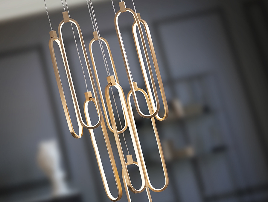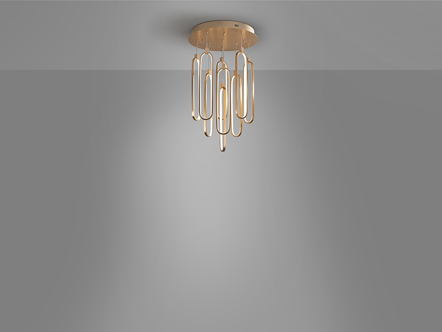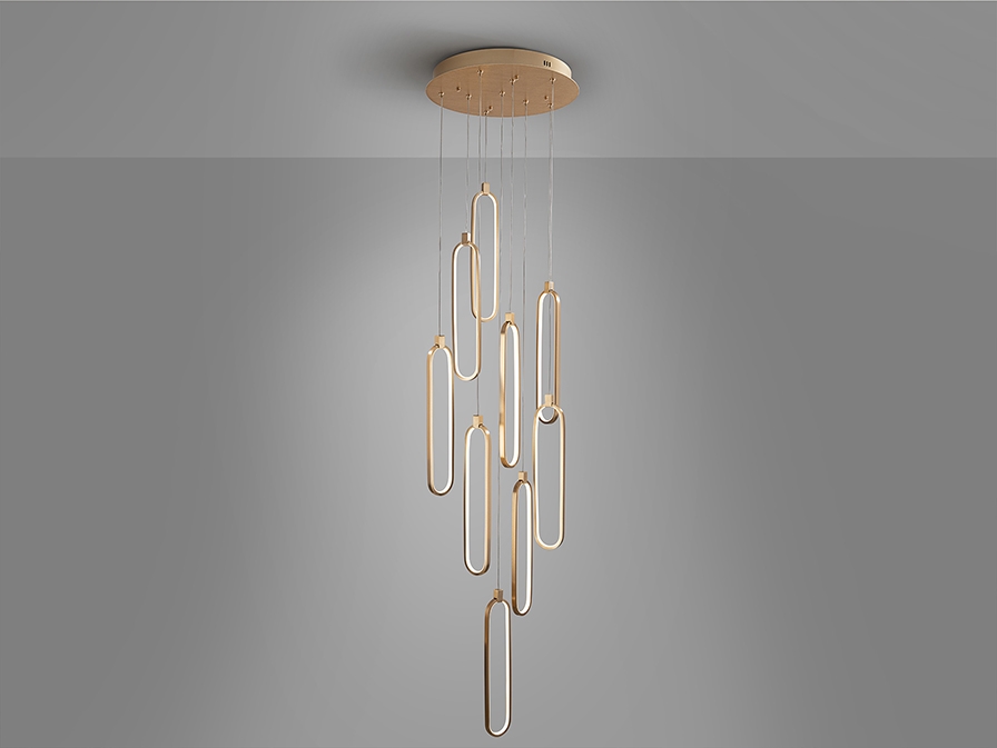 Каскадный светильник Colette с 9 овальными подвесами и регулируемой высотой подвешивания. Изготовлен из легкого шлифованного матового алюминия с оттенком розового золота. Стальная потолочная база диаметром 50 см. Люстра как интересный акцент в интерьере современной комнаты. В галерее наглядно показаны разные варианты внешнего вида, благодаря регулировке высоты каждого подвеса. Это дает возможность оптимального оформления под любую обстановку с разной высотой потолков. По внутреннему контуру каждого подвеса установлена светодиодная лента, обеспечивающая общее освещение мощностью 117W LED, 5600 lm. Цветовая температура 3000 К создает комфортное теплое свечение, которое не утомляет глаза и идеально подходит для создания уютной атмосферы. Силиконовые рассеиватели поверх светодиодов обеспечивают равномерное освещение и придают свету мягкость. Светильник диммируемый. Включает в себя светодиодные драйверы с симистором и регулировкой яркости 0-10 V. Благодаря регулировке, можно контролировать интенсивность освещения, создавая более светлый или приглушенный фон. Это допустимо с помощью настенного симистора или переключателя яркости 0-10 V. Любой ДРУГОЙ тип диммера может повредить светодиодный драйвер.