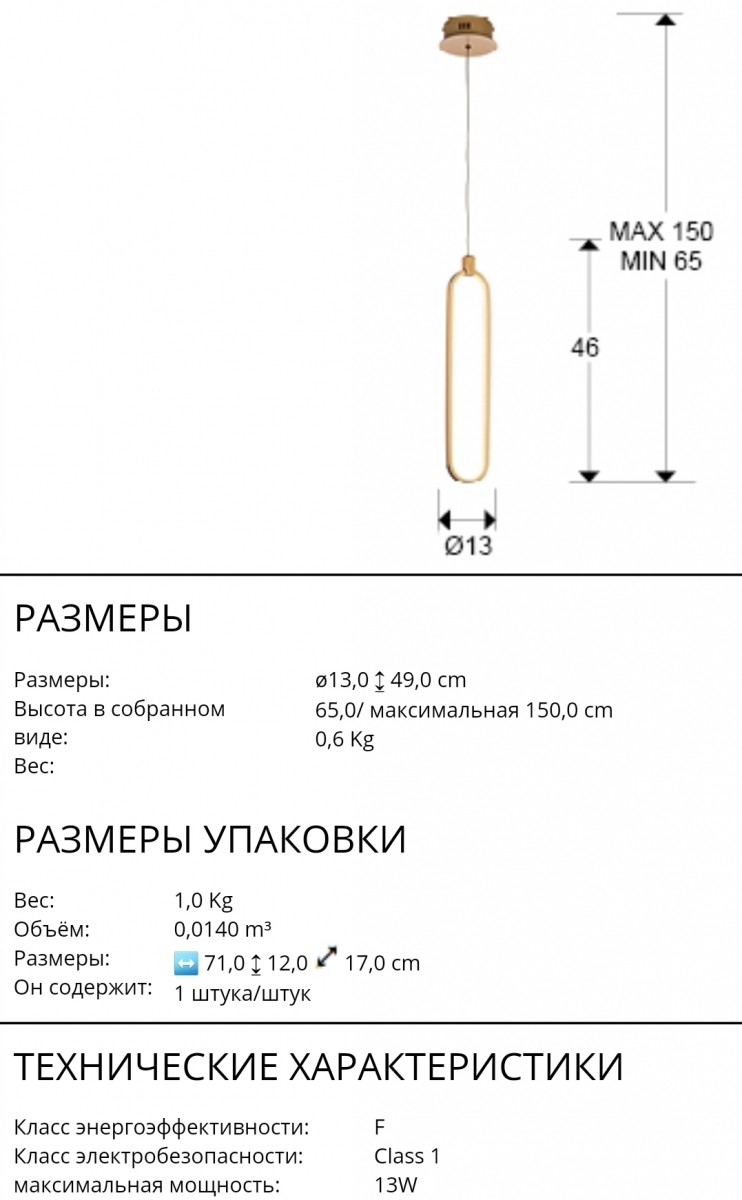 Интересная модель светодиодного светильника из коллекции Colette в форме высокого овала сделана из алюминия с матовым полированным золотистым покрытием. Силиконовый рассеиватель опалового цвета закреплен по внутреннему контуру подвеса. Высота подвешивания регулируется. Мощность 13W LED, 1170 Lm, теплый свет 3000 K. Средний срок службы рассчитан на 20000 часов.