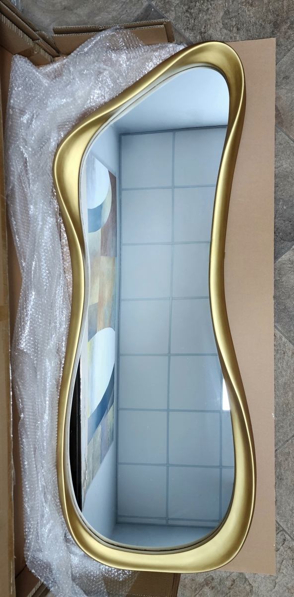 Изысканная объемная рама у коллекции фигурных зеркал Gina c плавными изгибами от фабрики Schuller. Глубина ее 7 см, высота 170 см. Матовое золото отделки красиво дополнит интерьер прихожей либо современной спальни.