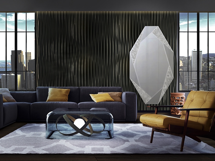 Большое эффектное зеркало- восьмиугольник из коллекции Laverna, особенностью которой является зеркальная рама с серебряной фольгой под стеклом. Высота 180 см, ширина 100 см отлично подходят для просторных помещений: современных холлов либо гостиных комнат. Основание у зеркала сделано из чёрной МДФ, с креплениями для вертикальной либо горизонтальной навески.