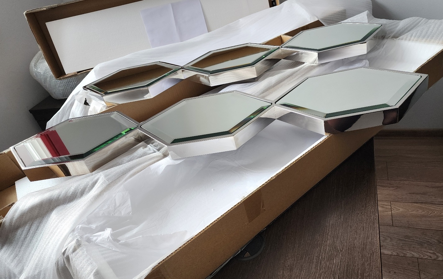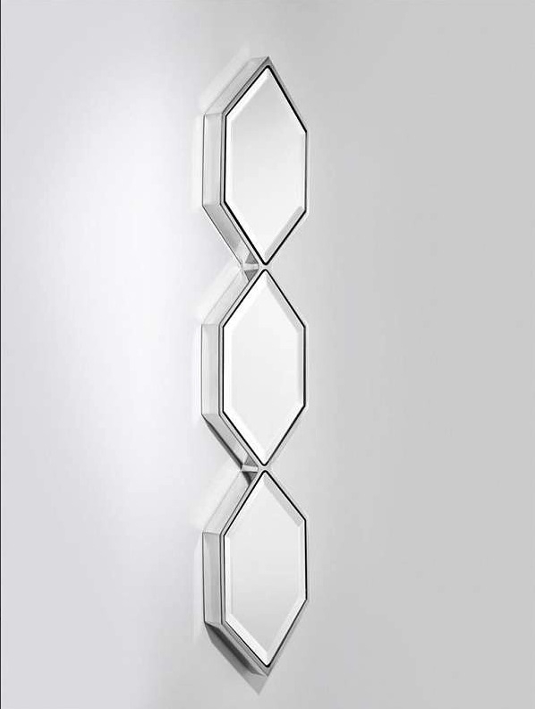 Дизайнерское зеркало- шестигранник Saronno 111438 популярного бренда Eichholtz с дорогой рамой из полированной стали и широким декоративным фацетом на каждом элементе, закрепленном на мдф основе черного цвета, прекрасно сочетается в паре либо большем количестве при разных вариантах навески: симметрично либо ассиметрично. Стильный аксессуар в современном интерьере. Высота 110 см, ширина 25 см.