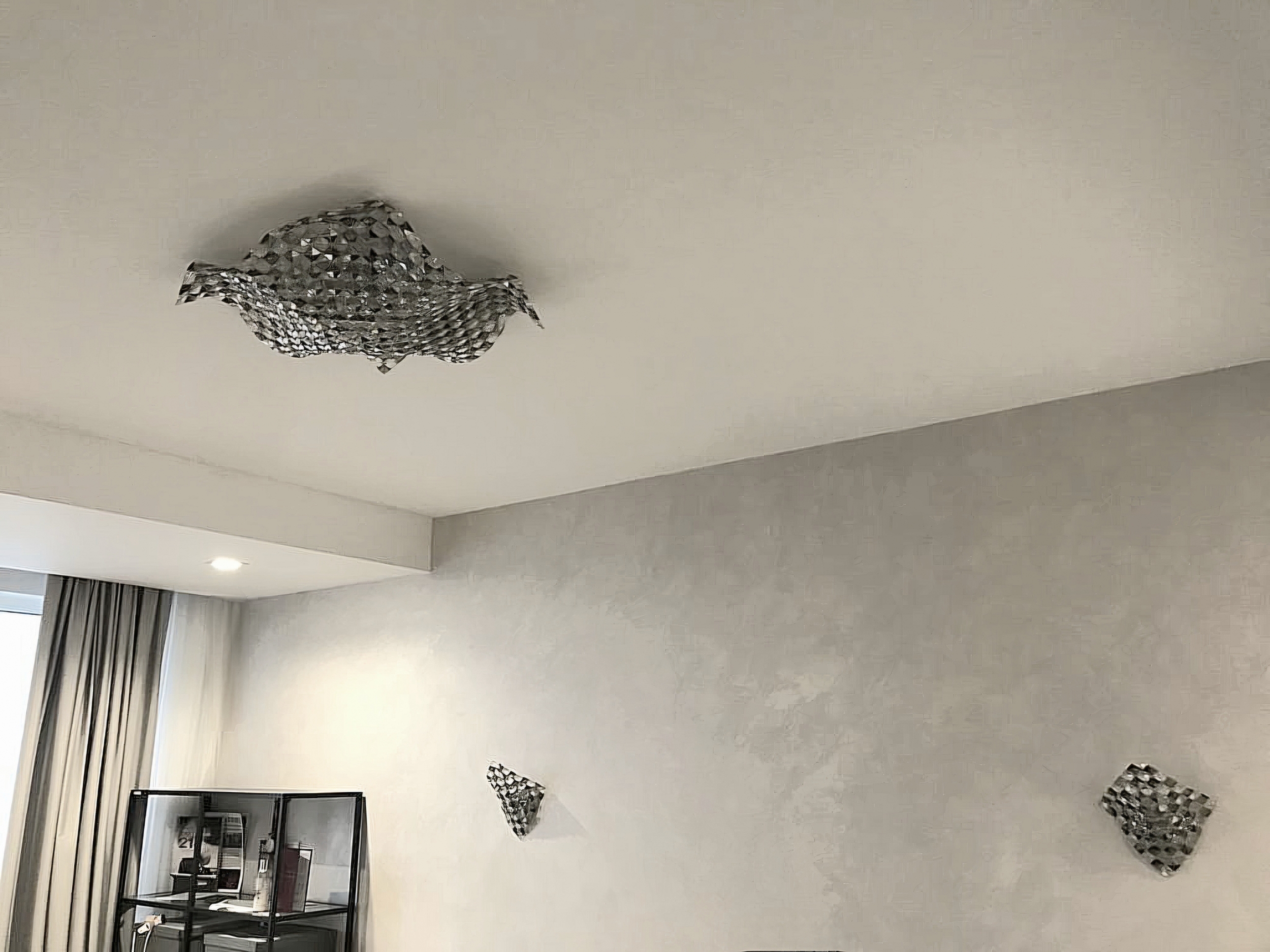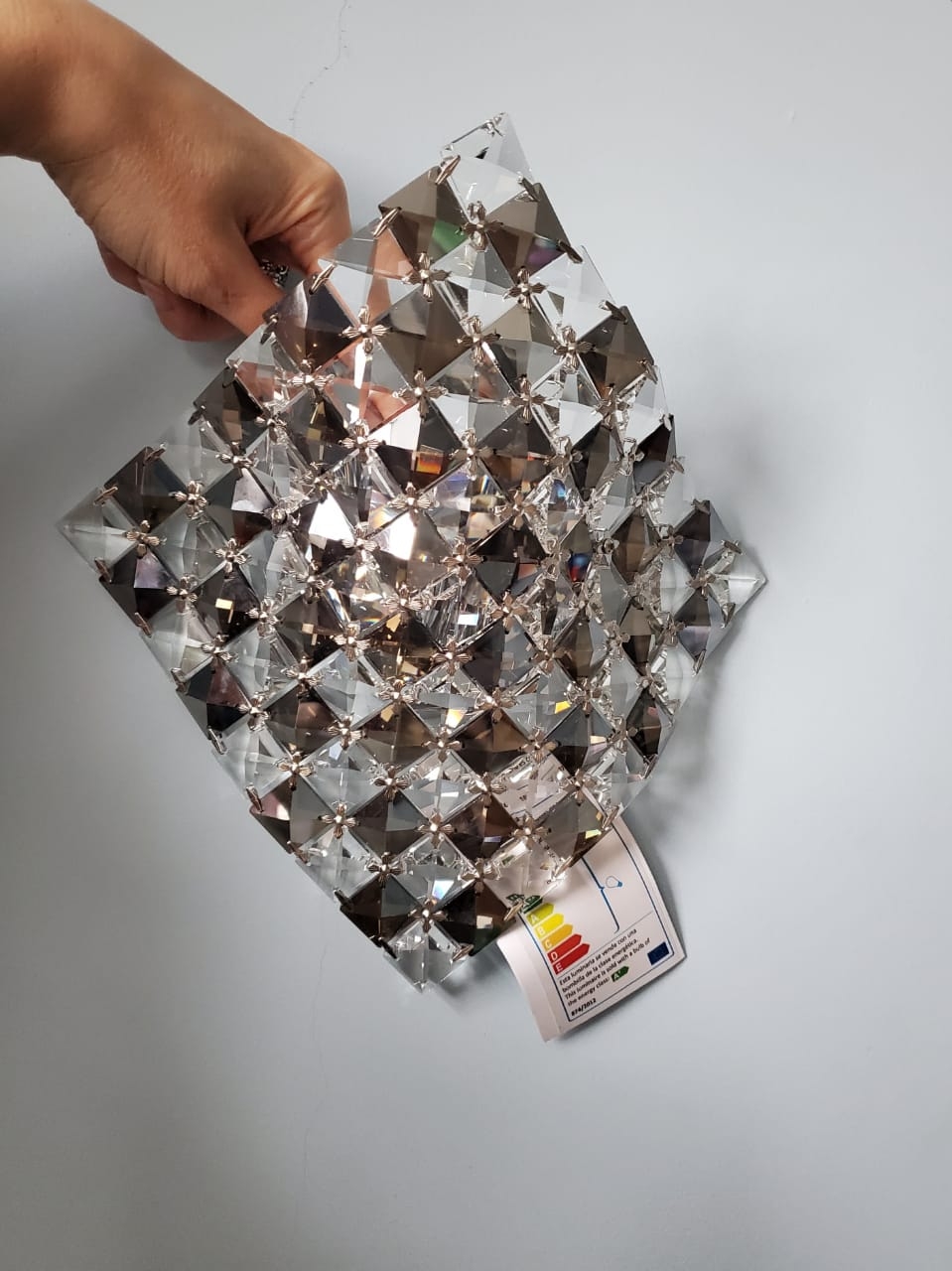 Бра и потолочный светильник из одной коллекции Saten. Двухцветные плафоны образованы квадратными кристаллами из стекла.